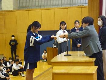 この後、表彰がありました。発明創意工夫展や、英語弁論暗唱大会、新人戦の表彰が主でした。