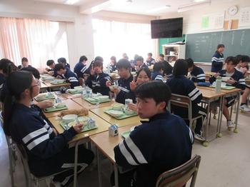 3年生の様子です。中学校生活の給食のカレーはあと何回だろうね・・と話しながら楽しく時間を過ごしています。