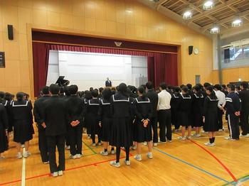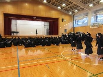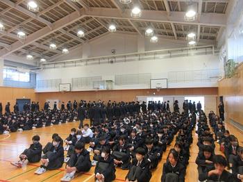 本校の広い体育館で、全校生徒857名が集合し集会を行いますが、