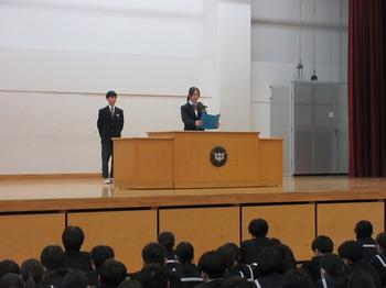 式が終わると、生活委員の代表がステージに上がり、退場の合図をします。