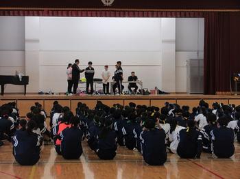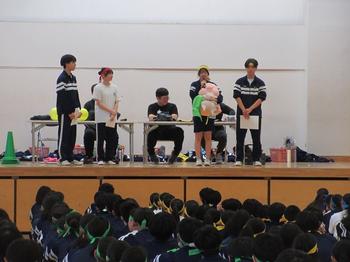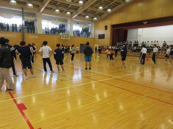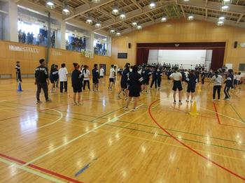 前日の雨で校庭が使用できず、体育館での開催となりましたが、