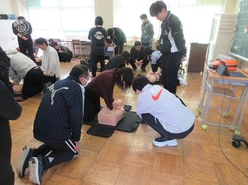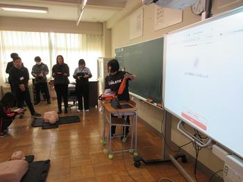 保健主事が中心となり、AEDやエピペンの研修です。
